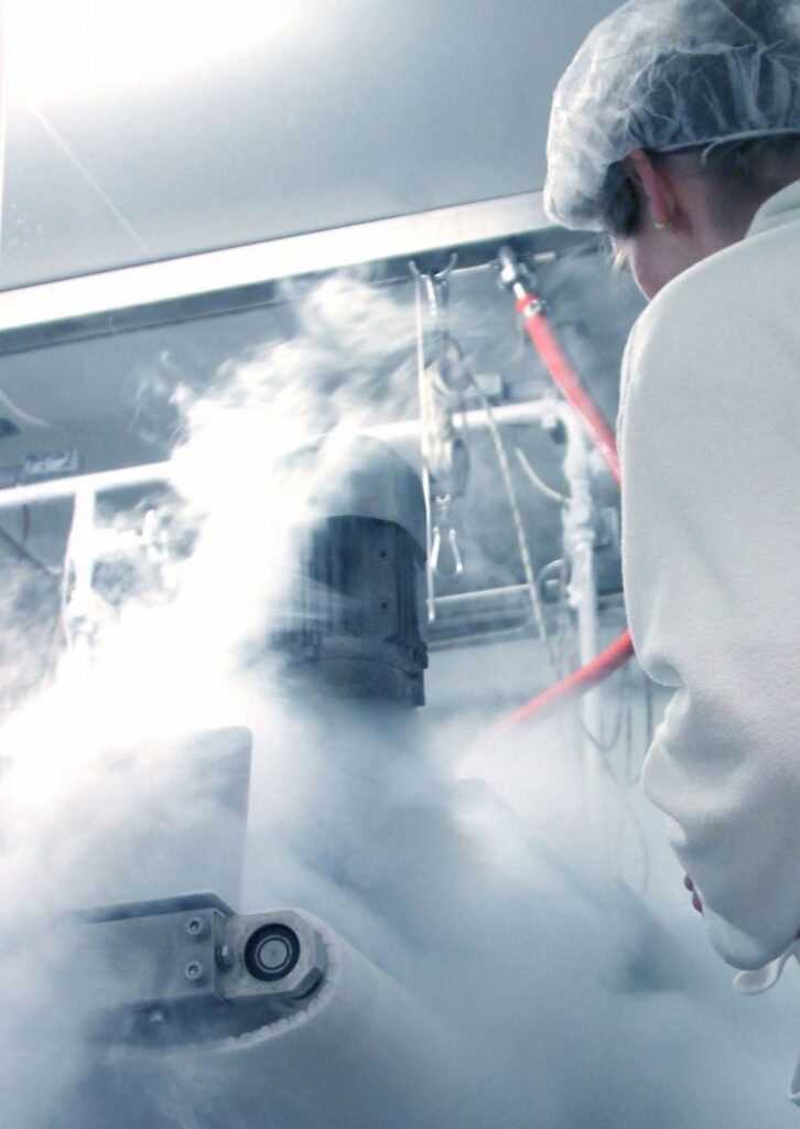 Das einzigartige Essgefühl entsteht durch Obst und bei der Herstellung mit dem patentierten kryogenischen Verfahren.