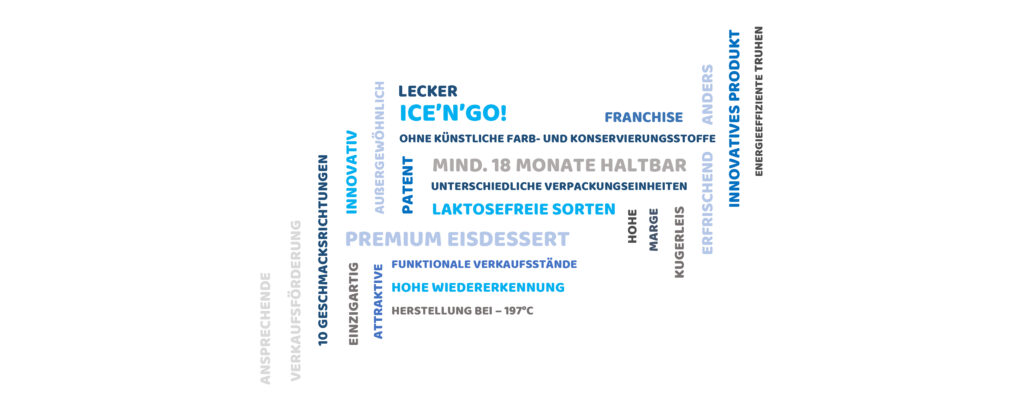 Und jetzt kommt der Clou: Weil wir wissen, dass unser Produkt erfolgreich ist, bieten wir eine einzigartige Kooperation ohne vertragliche und zeitliche Bindung und ohne Mindestabsatzmengen. Das können wir deshalb, weil wir Ihnen ein außergewöhnliches Produkt mit hoher Wiedererkennung und 100% Service aus einer Hand bieten. Ihr persönlicher und unternehmerischer Vorteil: Ohne finanzielles Risiko kann in kürzester Zeit ein Verkaufsstand mit ansprechendem Design eröffnet werden. Und das Beste daran ist: ICE’N’GO! fällt nicht unter die Klassifizierung Speiseeis, wodurch es problemlos auch in Ihr bestehendes Sortiment aufgenommen werden kann! So einfach kommen Sie zu starkem Umsatz mit ICE’N’GO!